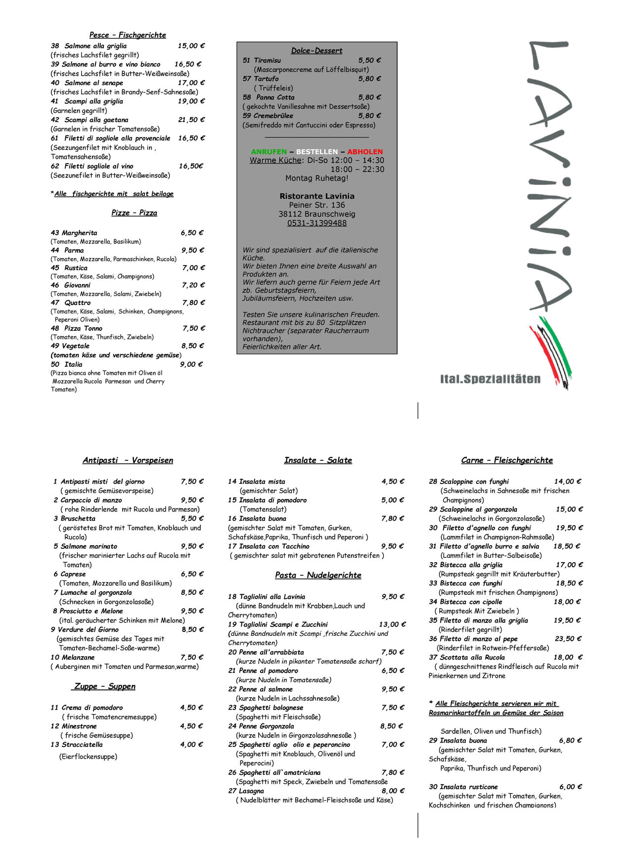 Ristorante Lavinia wünscht Ihnen eine schöne Sommerzeit